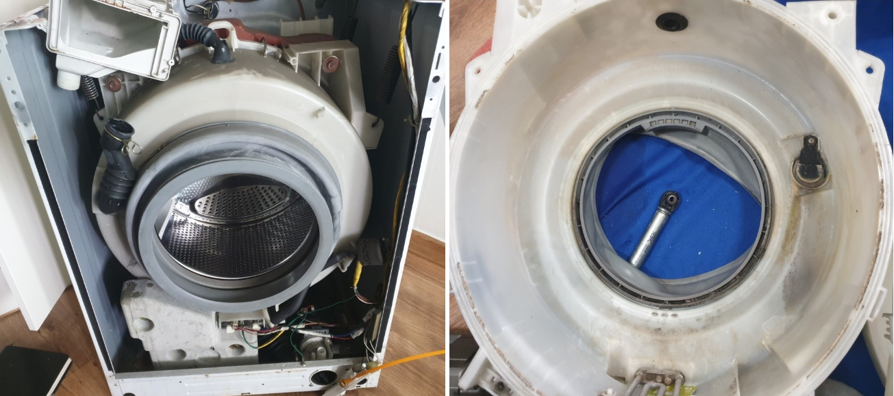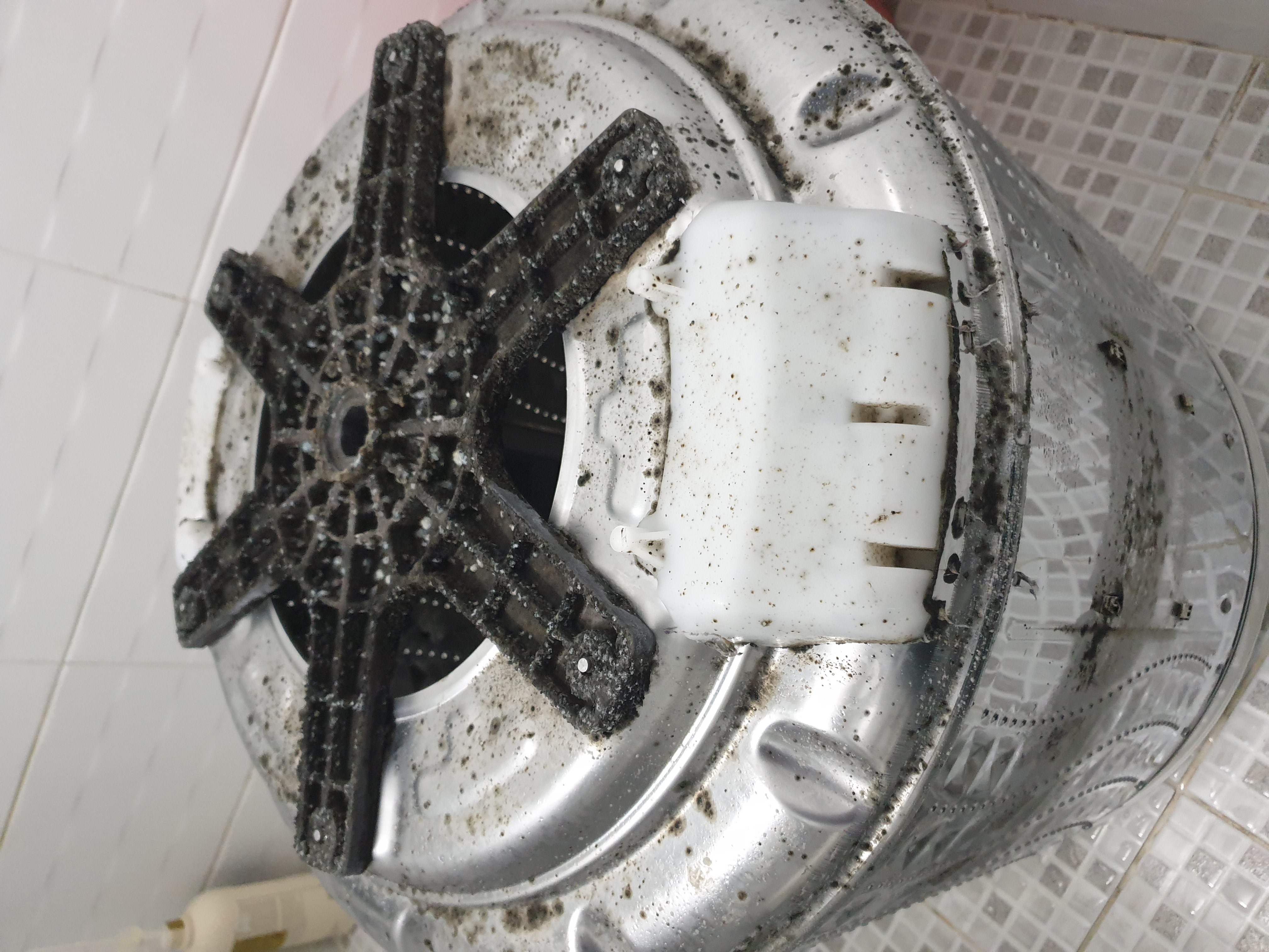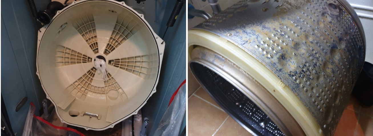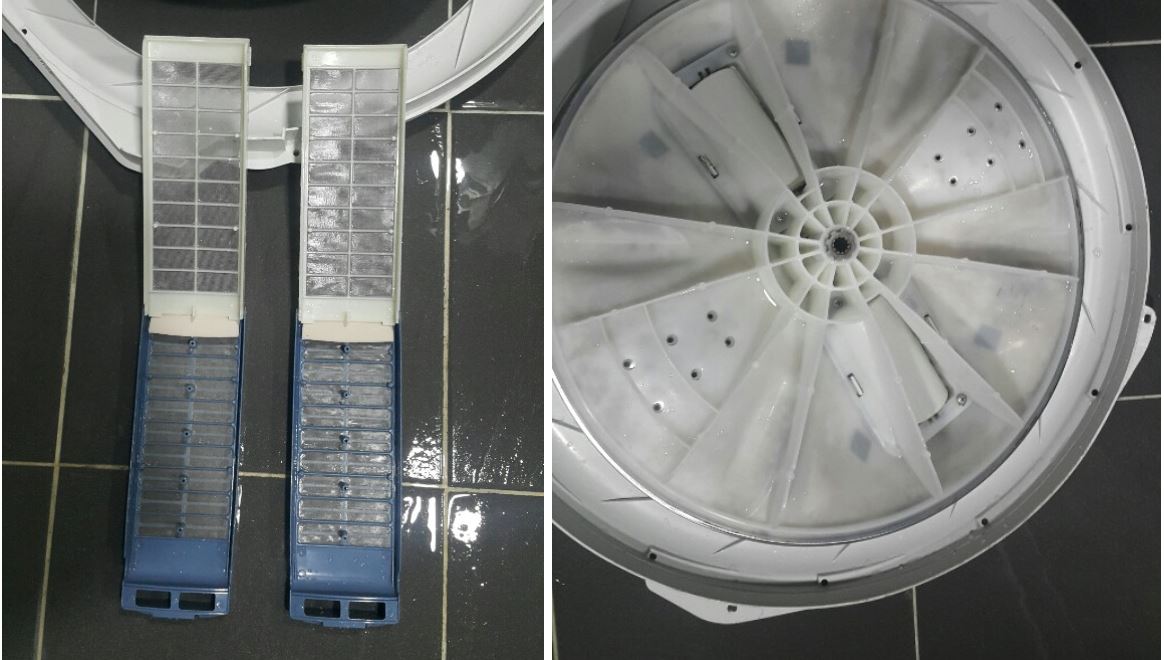 세탁기 외관으로 보기엔 굉장히 깨끗한데요.과연 내부도 깨끗할까요? 분해를 해보았더니 이럴수가...! 내부에 찌든때로 가득합니다.노란것들이 뭉쳐있는것을 보실 수 있습니다.세탁기는 내부에 통들을 세척하지 않으면 세탁기가 세척시에 물과 혼합되어 각종 묶은 때와 같이 세균 곰팡이들을 같이 세탁물과 함께 혼합해 빨래가 되어…
