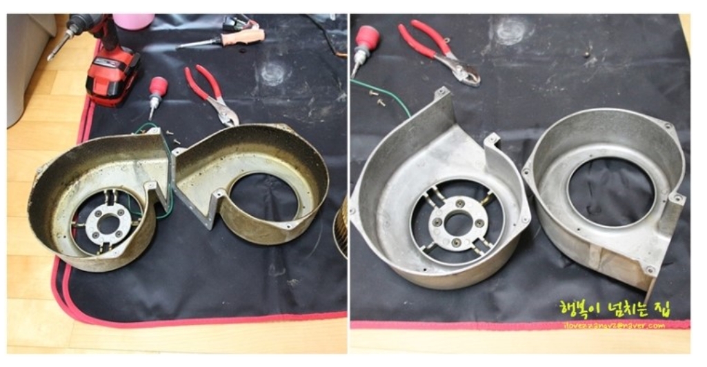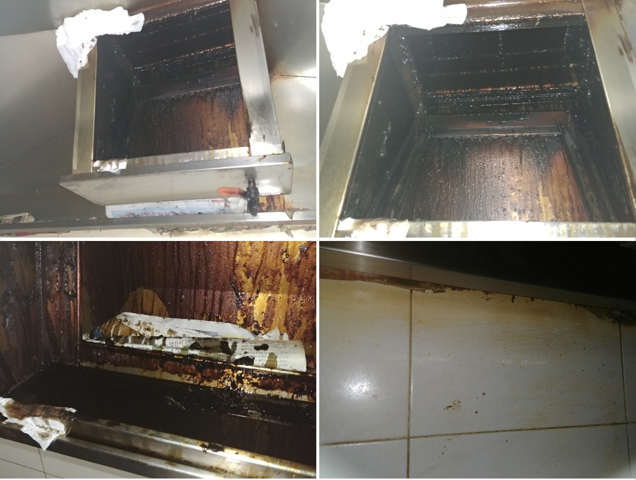 우선 기름때가 오래 묵혀있어서 오래 묵힌만큼 세제를 뿌려서 오래 담궈놔야 기름때가 벗겨집니다. 세제를 아무리 강력한걸 써도 구석이나 모서리부분에 기름때는 직접 벗길수가 없기때문에 기름때는 완벽하게는 벗겨내기는 힘듭니다.하지만 저희 hs홈케어는 묵은 기름때도 벗겨드립니다. 사진에 보시면 이미 은색의 후드가 노랗게 변한…