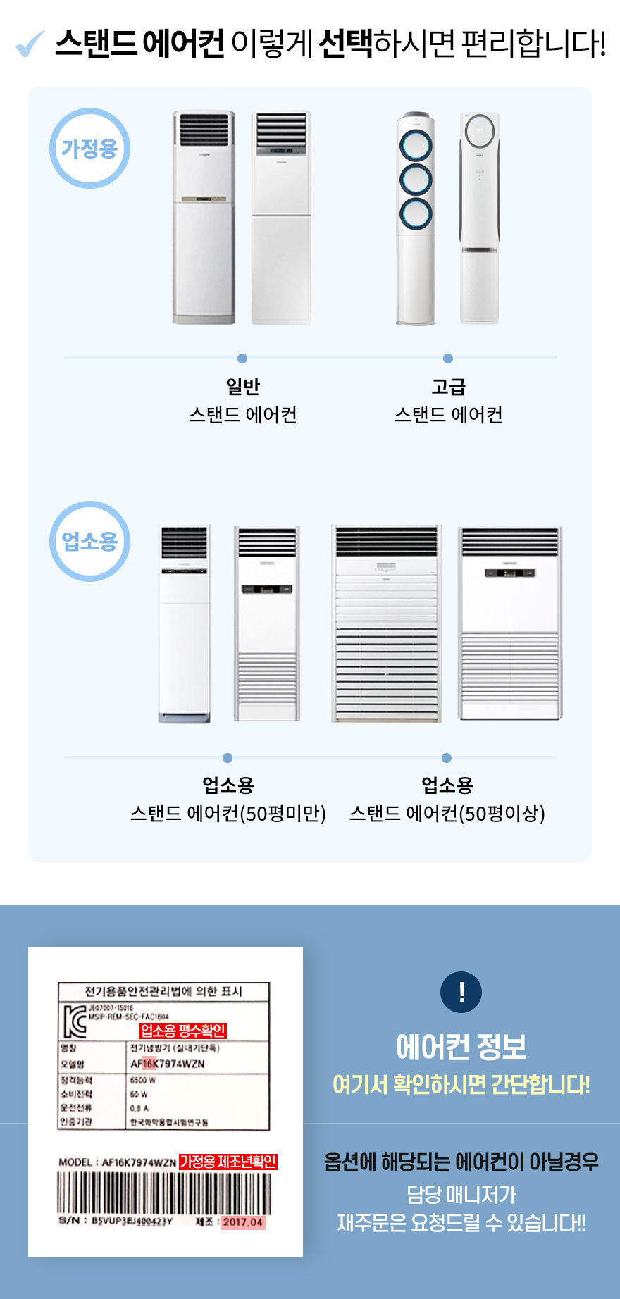 | 스탠드에어컨 업소용(50평미만) | 155,000원 | 공간의 평수가 50평미만일경우 | |
